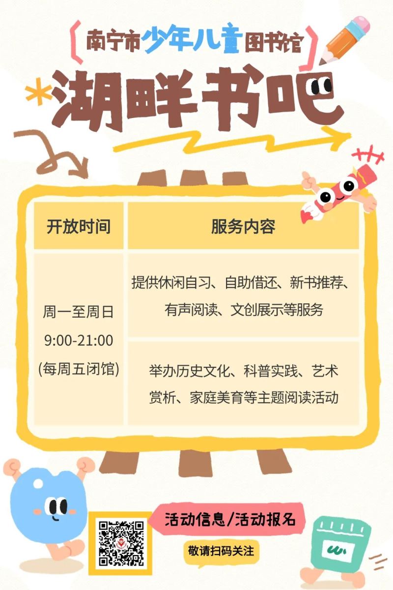 久等啦!各位小读者、大朋友们,南宁市少年儿童图书馆湖畔书吧历经精心装修升级,即将以全新模样与大家重逢!2026年2月1日,让我们赴一场湖畔与书香交织的美好之约~